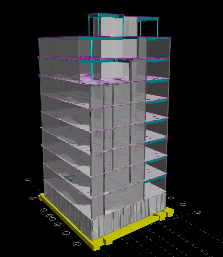 Stratford was in charge of designing the superstructure, as well as the building’s foundations and support of excavation. The foundation included a concrete mat foundation with several grade beams and strip footings to provide lateral stability and supports for vertical elements. In addition, benched footings were used throughout the foundation to avoid underpinning the existing adjacent structures.