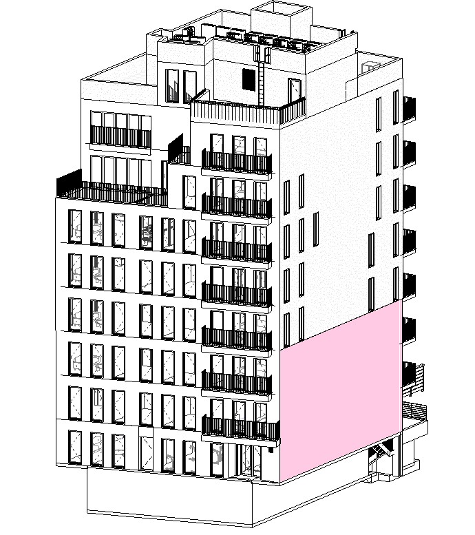 30-32 Bushwick Avenue is a new eight-story building with a partial cellar in Bushwick, Brooklyn, New York, designed to be a multi-family residential building. The new building is framed with CMU shear walls and exterior walls with concrete slab on decks on steel infill framing. Each floor included one front and two rear cantilevering walkable balconies for the tenants to use. This building was within the limits of an adjacent MTA subway line, so additional care was used for the substructure to adhere to MTA requirements and regulations.