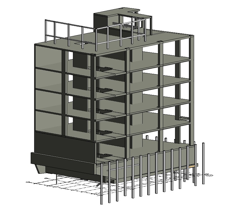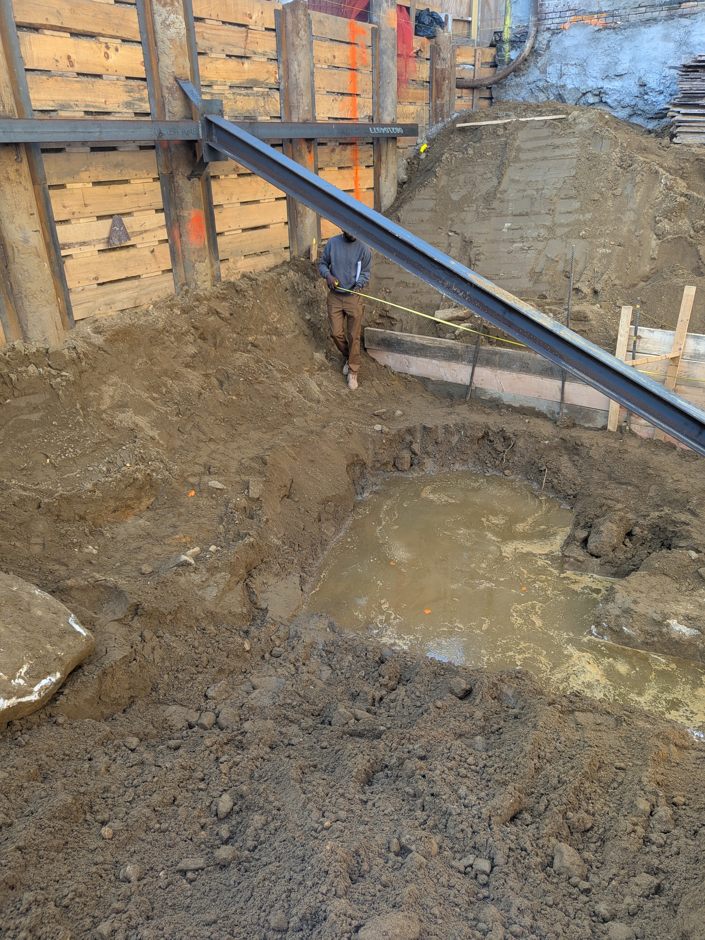 Stratford was also designed the support of excavation of the building. The support of excavation involved the installation of temporary grouted steel piles along the South and East, street-adjacent sides of the building, with walers between the piles and rakers installed down to bedrock below. Included in the support of excavation was also a monitoring plan, containing vibration and optical monitoring compliant with applicable local building codes.